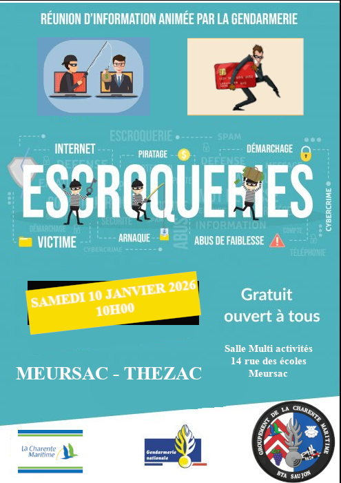 Au vu de l’évolution importante en terme de volume victimes en ce qui concerne les escroqueries et abus de confiance, la Gendarmerie de SAUJON a débuté des petites réunions d’information sur le sujet à l’attention des administrés.
